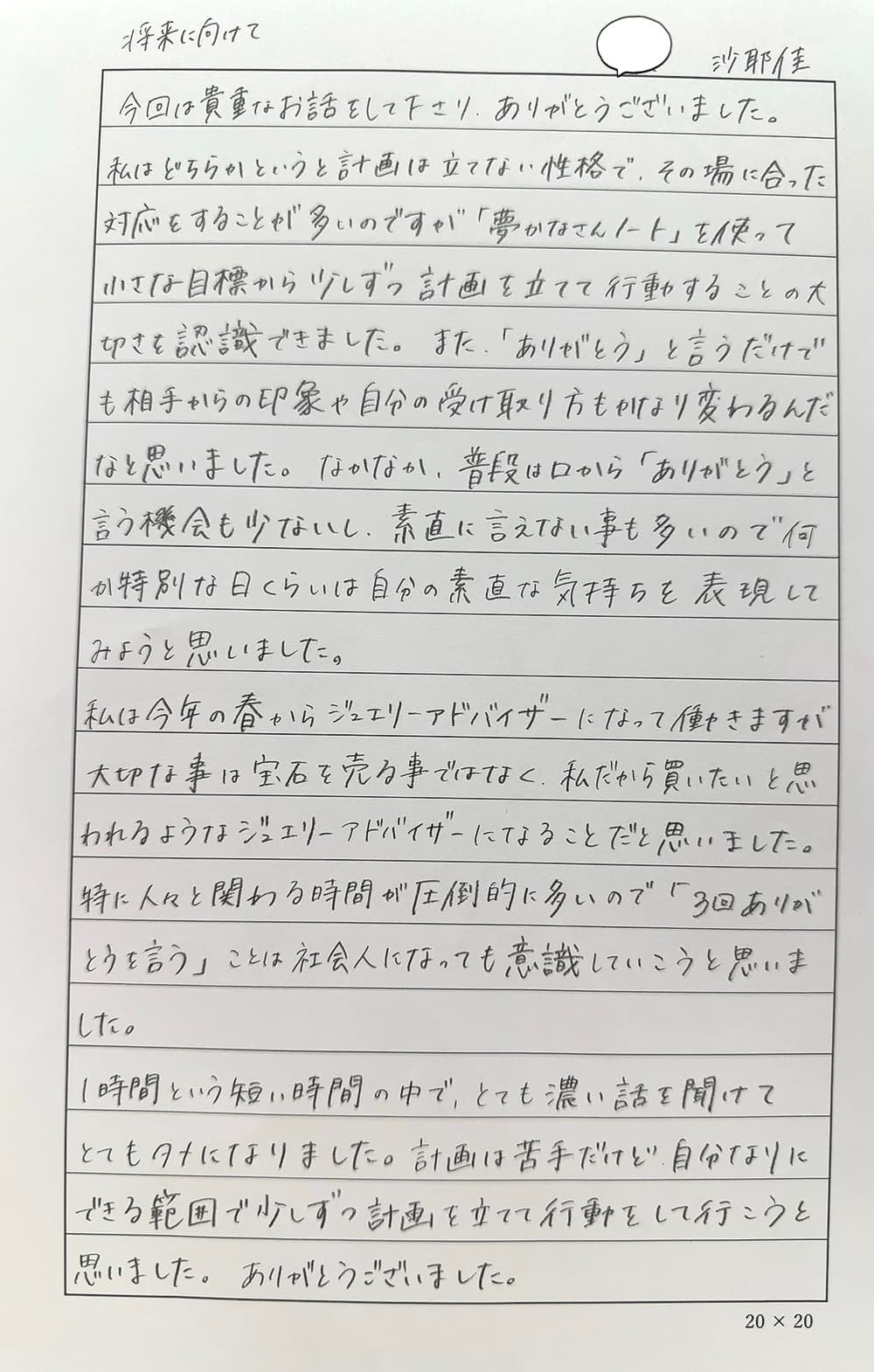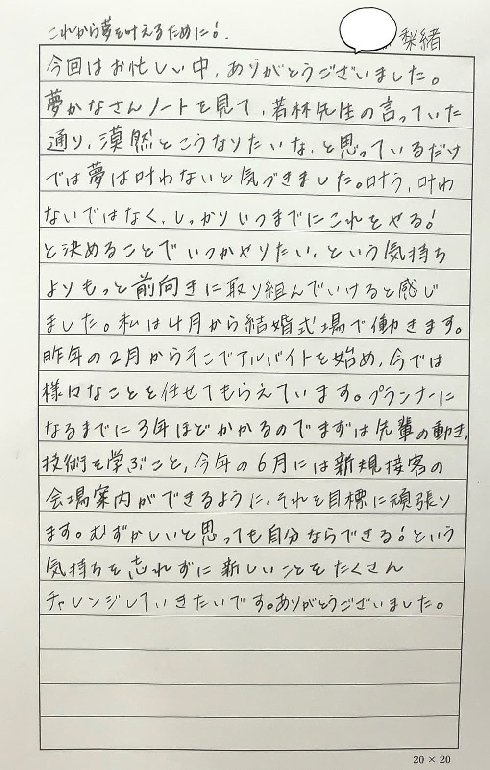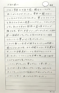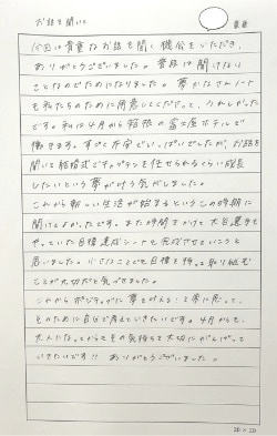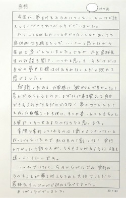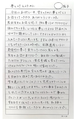 ・具体的には自分でもまだイメージは何も無いけど、新しい私に向かって何かを始めたいとちょうど思っていた時で、『夢かなさんノート』のご紹介を聞いて自分の力になってくれそう!と感じたためです。