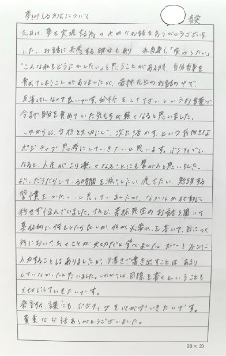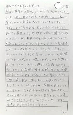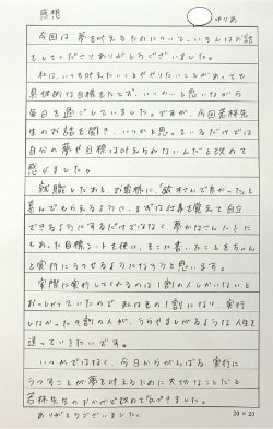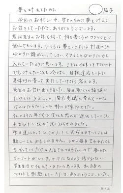 頭で考えたり思い浮かべていることをノートに書き込むことにより、自分の考えが整理できるようになりました。